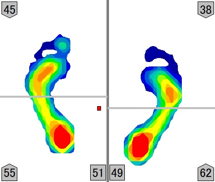 久しぶりに腰痛になってこられた患者さんの足圧です。